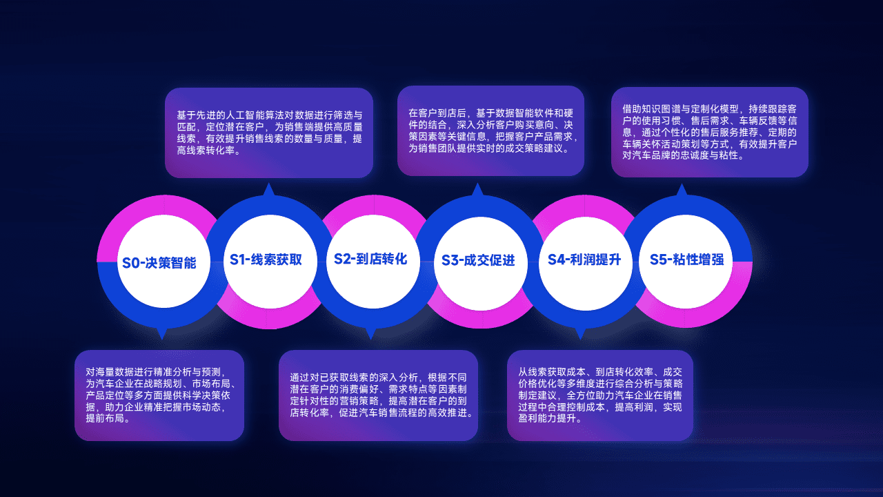 通过拓宽潜在客户来源、、优化线索分配并提高到店转化率,,,以增强销售效率。。。同时,,,,利用线索数据不断优化分析模型,,,,有效提升转化率,,,,扩大营销影响力。。